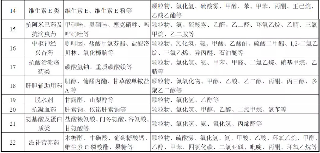 下表為制藥行業(yè)生產(chǎn)過(guò)程中排放的典型VOCs污染物:
